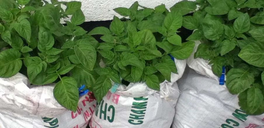 用麻袋栽种土豆,相同的土壤不要用两年,否则容易让土豆感染病虫害。这也是为什么我们平常种在院子里的土豆,第2年就不会再用来种土豆,就是为了避免感染病虫害,降低风险。