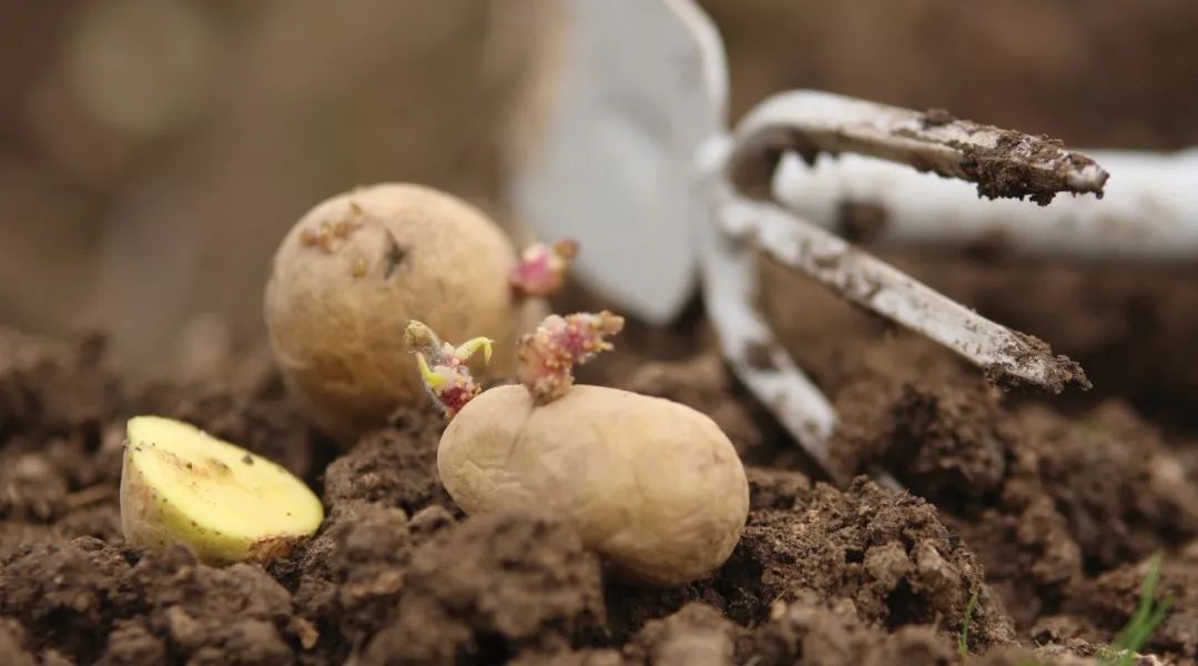 土豆在栽种的前一周可以先放在一个温暖的地方,让土豆慢慢长出一些小芽,等它的小芽长到一两厘米高,就可以将带芽眼的一大块切割下来栽种。切割下来的土豆要先放两三天再栽种,这样是为了让伤口愈合,切下来的土豆每一块大概有5厘米宽,保证每一块都有两个以上的芽眼。