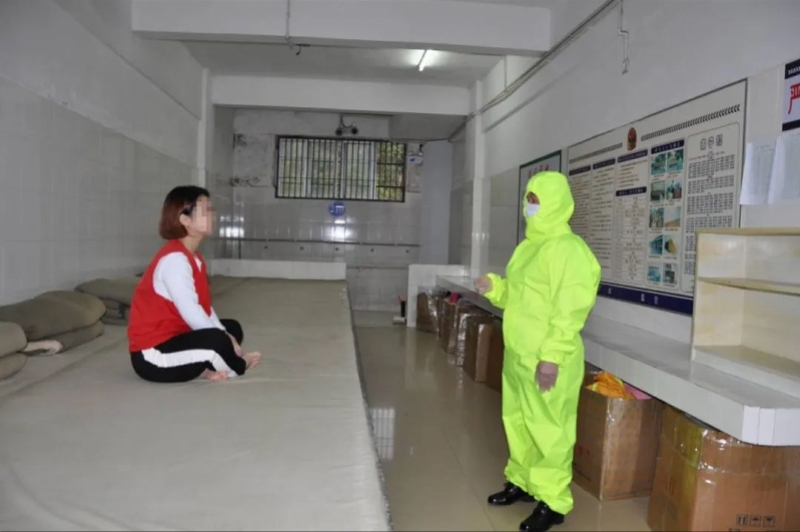 期间,新收押人员冯某因疫情封闭时常心绪不宁,有时还会自言自语,且多年吸毒史也导致了她的身体状况不佳。黄雪英了解情况后,毅然穿上防护服,多次深入到监室与尚未完全排除感染可能的冯某谈话,安抚情绪,还为她送上生活用品。经过持续的心理疏导,冯某的情况有了不小的好转,对黄雪英的陪伴和关心表达了衷心的感谢:“感谢黄警官,给你添麻烦了,我以后一定不会胡思乱想了。”