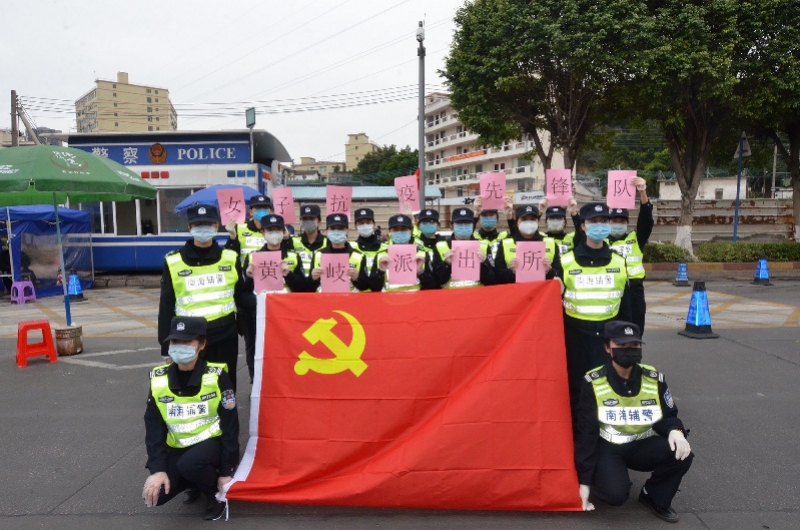 全国首批枫桥式公安派出所——佛山南海公安分局黄岐派出所成立了“女子党员抗疫先锋队”,她们利用休班时间,深入一线开展防疫工作检查与宣传。阳光明媚时,她们穿梭于大街小巷、企业工厂宣传防疫知识;风雨来临时,她们备上热腾腾的姜茶、汤圆走进联合检疫检查站。
