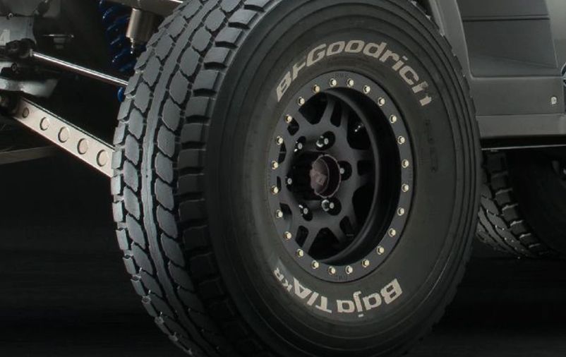 越野赛事常见的BFGoodrich轮胎。赛用级别的,价格大概在5000人命币一条。
