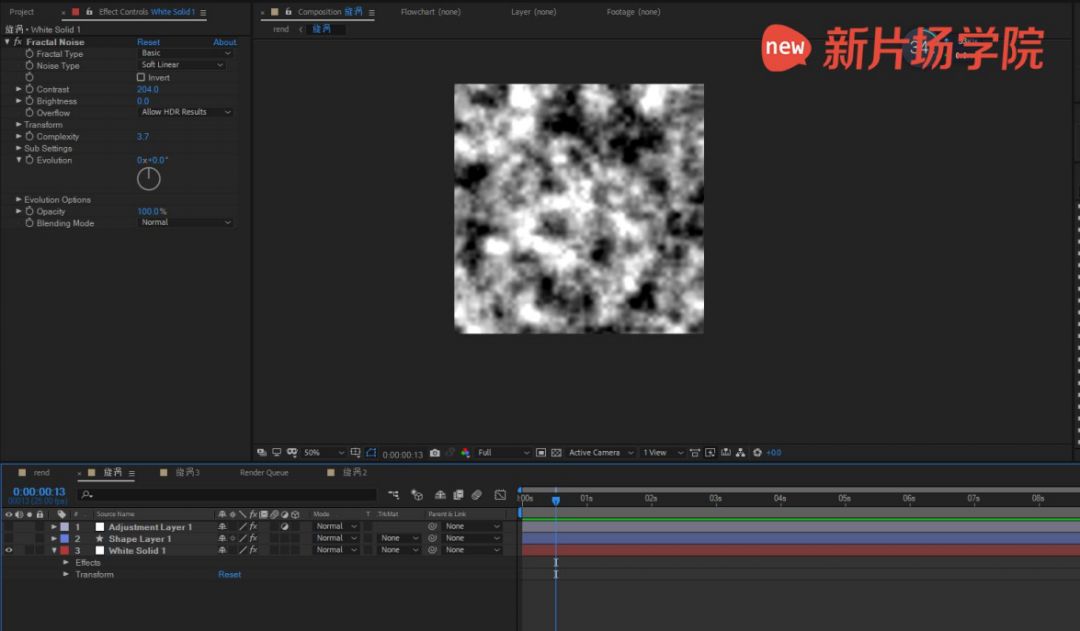 第二步 ,添加fractal noise调整对比度等参数到如图效果。