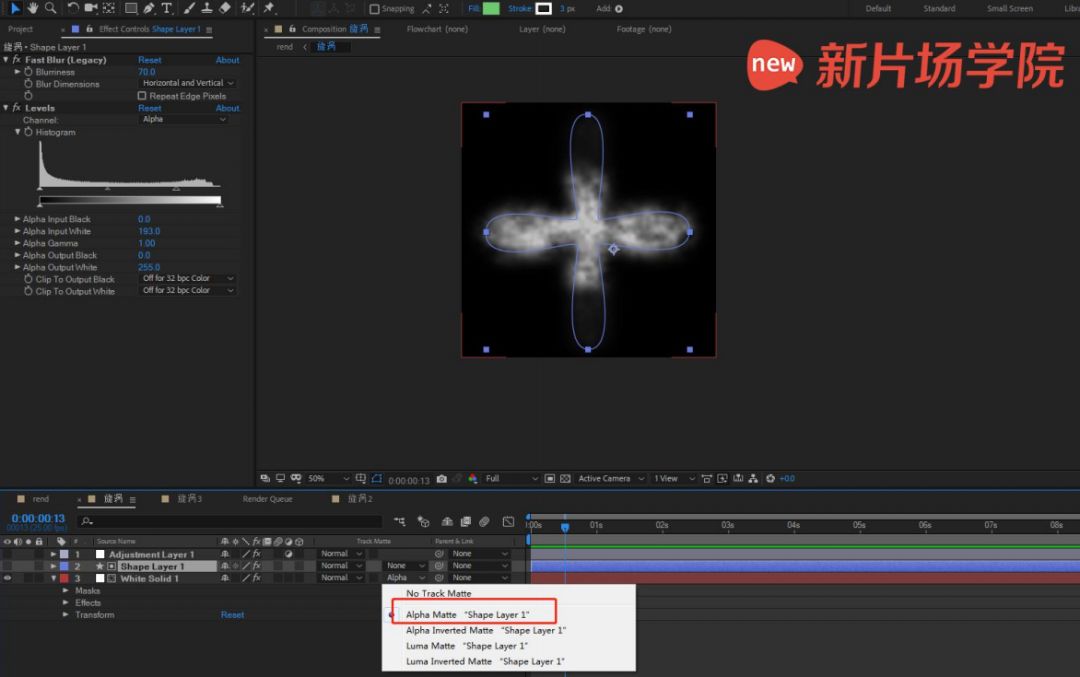 第一步 ,打开AE,新建一个合成,并且添加一个图形层。