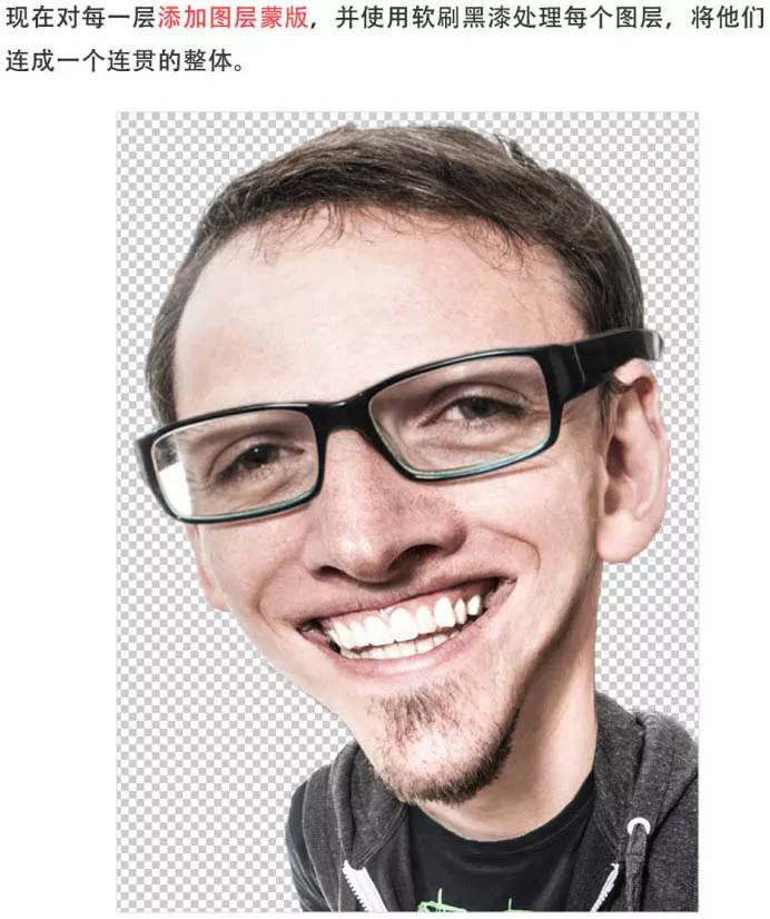 8、现在对每一层添加图层蒙版,并使用软刷黑漆处理每个图层,将他们连成一个连贯的整体。