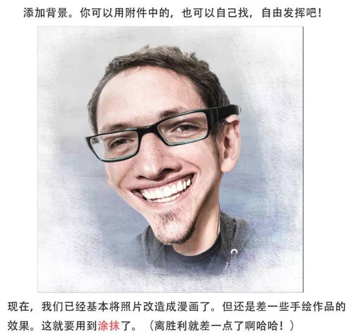 漫画是一种有趣的、替代传统的肖像画。我们的想法是进行滑稽夸大特定特征来展现个人的幽默。Photoshop中的扭曲变形和液化功能是很好的,可以让你将一个摄影肖像改造成漫画。最终效果