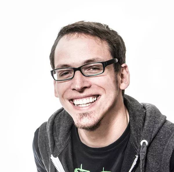 创建漫画的基本技术是寻找那些自然的元素中的特点,然后把它们夸大到滑稽的程度。在我们的这张照片中,年轻男子的下颚线是相当大的,他的笑容很突出。眼镜和发际线等这些都是他肖像中的特点,我们可以从这些特点下手。
