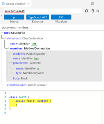 在使用 AST 可视化还会呈现源代码,在选择其节点时,还会突出显示源代码中的跨度。