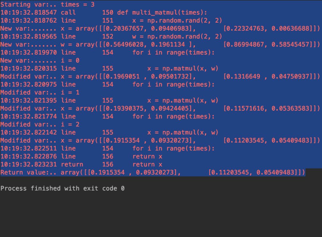之前机器之心曾,我们只需要向感兴趣的函数增加一个装饰器,就能得到该函数的详细 log,包含哪行代码能运行、什么时候运行以及本地变量变化的确切时间等等。这个 GitHub 12.3K Star 量的 DeBug 工具,输出风格是这样色的: