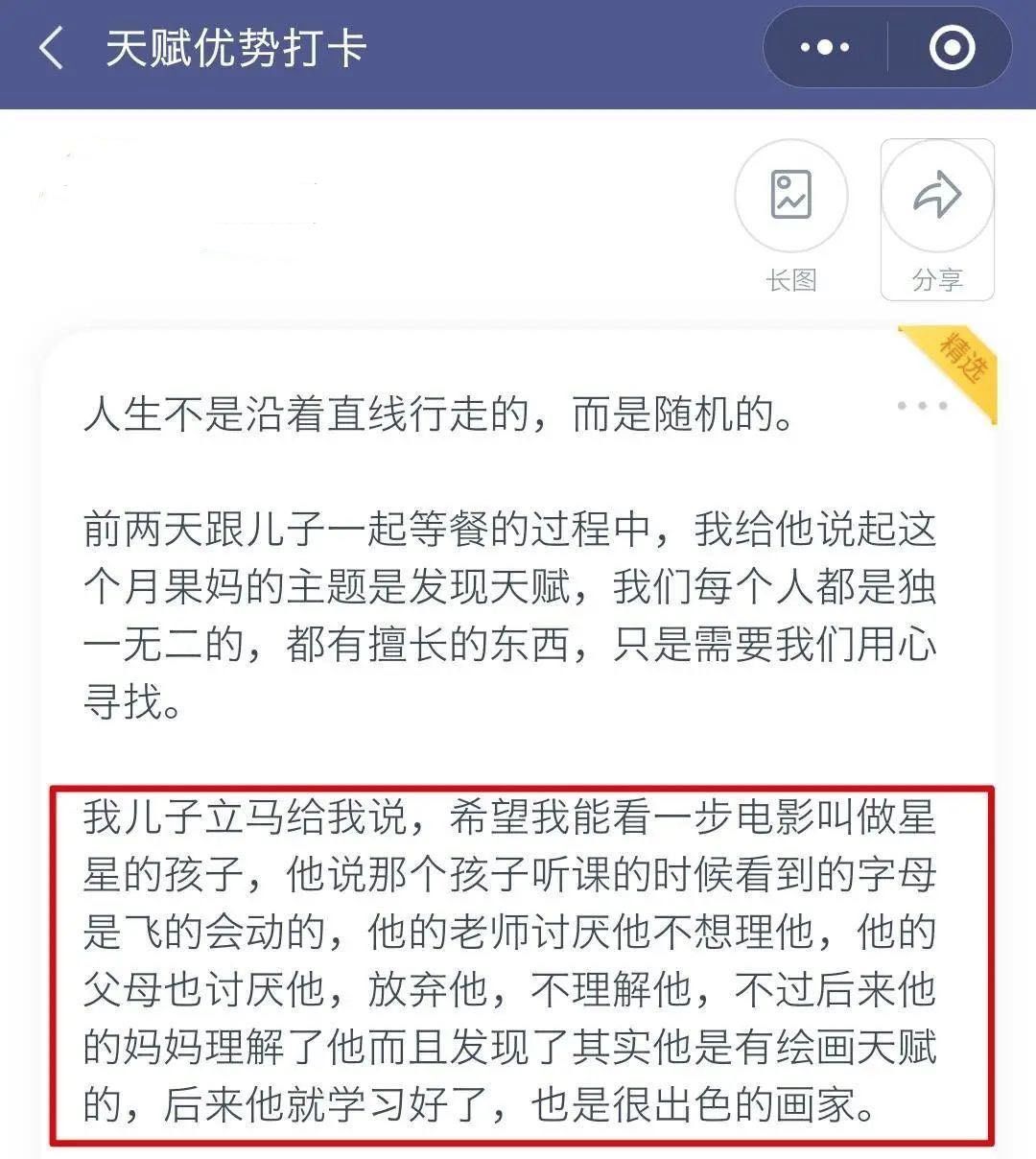 果妈在《让天赋自由》中也讲过:老师能为我们打开大门,加入我们寻找天赋的旅程,他们会告诉我们接下来应该做什么,并鼓励我们勇于接受挑战。