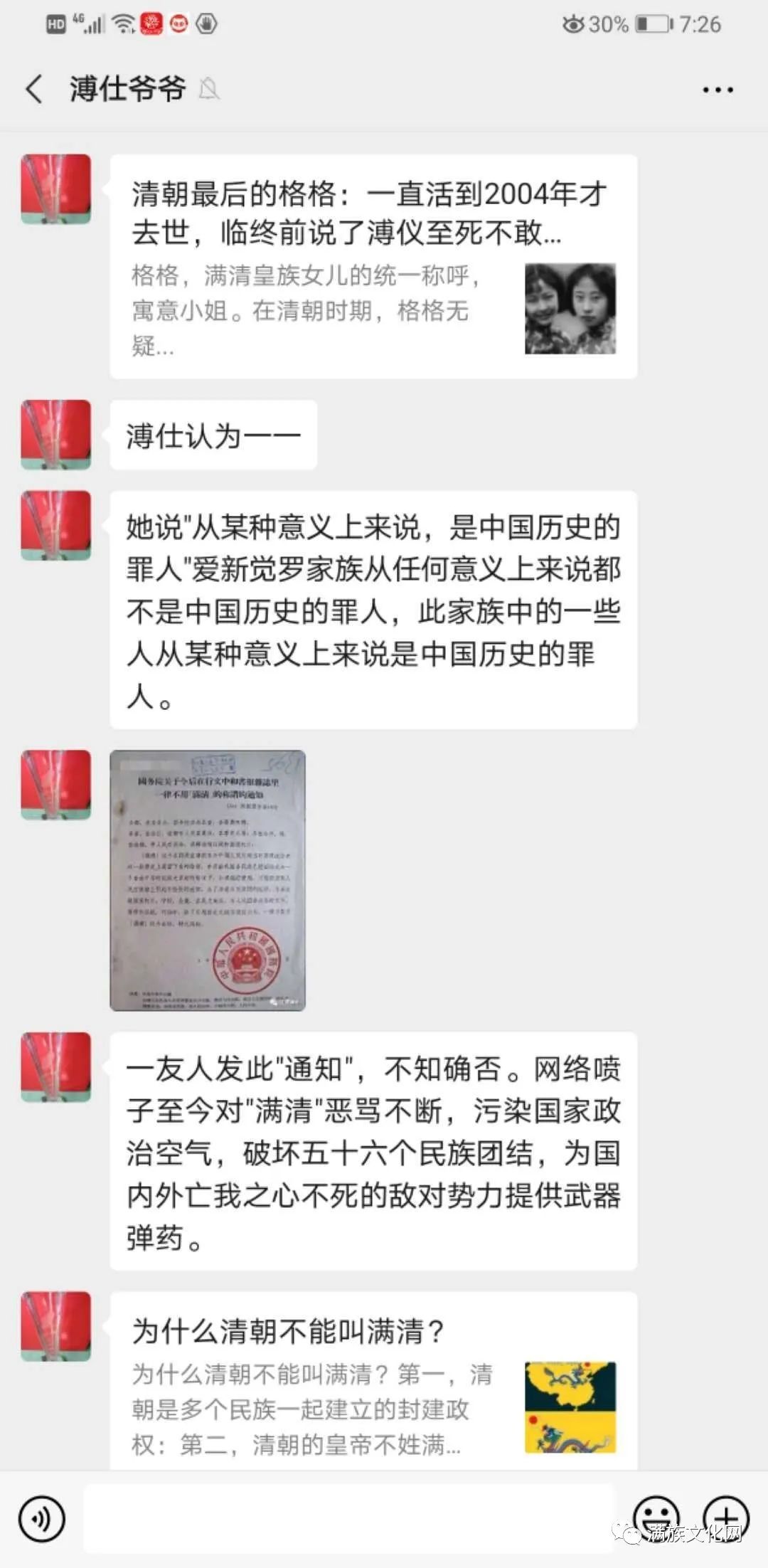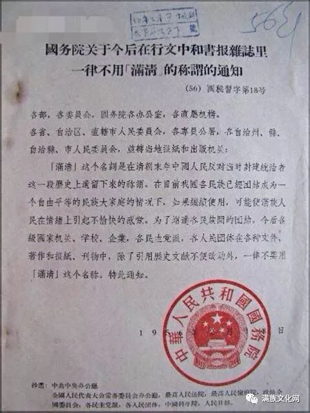 国务院于1956年颁发《关于今后行文和书报杂志里一律不用“满清”的通知》。我在2019年2月15日写过文章《》,但我对此通知出台的背景了解不深,现在得知:溥仕先父载涛曾就此问题在人大会上提案,主张用"清朝"废"满清"一词,大会批准,得到国家领导人同意,最后以国务院通知的名义发布,现在少有人知。