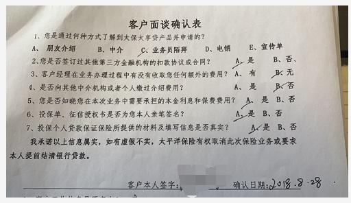 陈先生还告诉记者,当时贷款的时候曾与太平洋保险签署过纸质合同,不过这份合同并不是一式两份借贷双方各留存一份,而是仅一份且还被太平洋保险收去,此外每次还钱都是转给业务员。