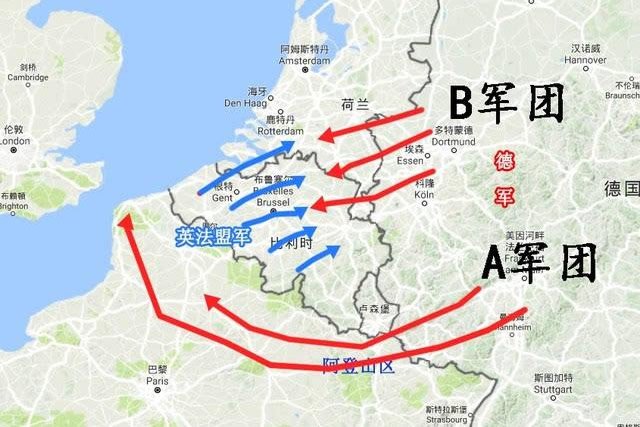 次年5月,德军又挥师南下直指法国。古德里安的装甲部队绕过马奇诺防线,从阿登森林里突然杀出来,与北方的B集团军群像两只大铁钳一样,死死掐住比利时境内的几十万英法联军。