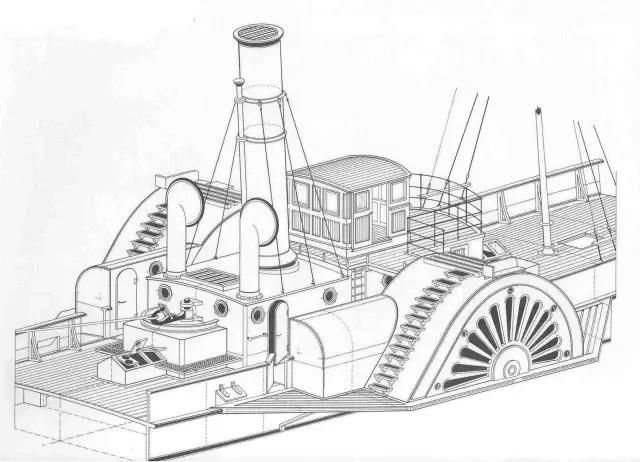 只是早期螺旋桨不成熟,所以人们在船舷两侧安装了体积巨大的旋转桨轮,形成了独具特色的明轮船。