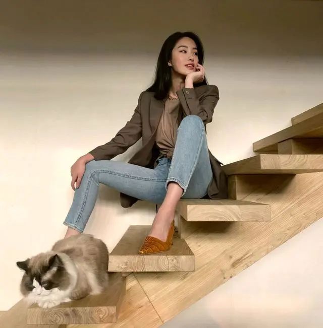 春天穿什么,杨采钰在自己的个人社交平台上晒出了一组照片,照片中她穿着卡其色打底衫下穿高腰牛仔裤,外搭一件深灰色的西装外套,脚踩蛇纹尖头高跟鞋,一身利落大方的穿搭造型时尚感爆棚。