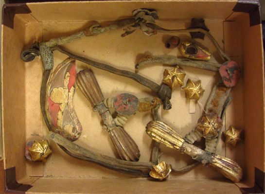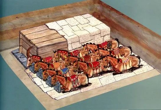 1929年,格里亚兹诺夫发掘了第一座巴泽雷克墓地,虽然早年被盗,但墓室北部的10匹殉马保存完好,它们均配备了木、铁马具。