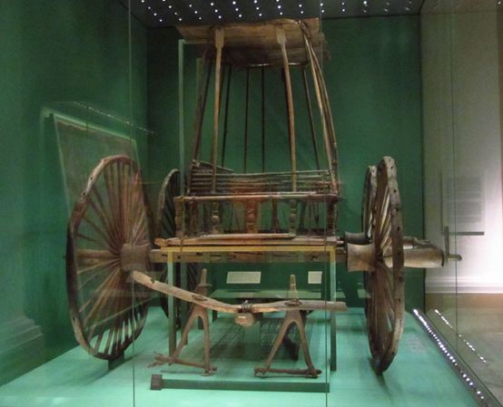 第二波传入中国的是商代中晚期的轮辐式双轮战车、印章等。当时阿尔泰地区资源比较丰富,有森林、水,还有黄金。