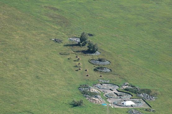 这些墓葬选址非常好,在山谷中间,年代为公元前4世纪至前3世纪中期,年代顺序为第3、1、2、4、5号墓。结构上有共同特点:大石封堆,没有墓道,为竖穴方坑,墓坑南部有圆木搭的木椁和独木棺,北部一般有殉马。