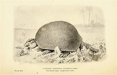 在提到巨型犰狳时,《灭绝的怪物》的作者说:“它们唯一的敌人似乎是猴子。”。 图片:Chapman & hall
