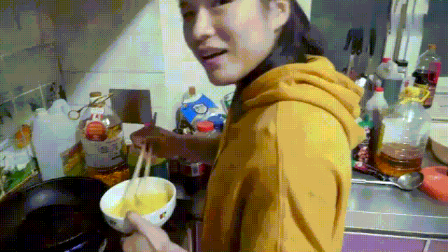 她很会做饭,喜欢吃西红柿炒蛋。