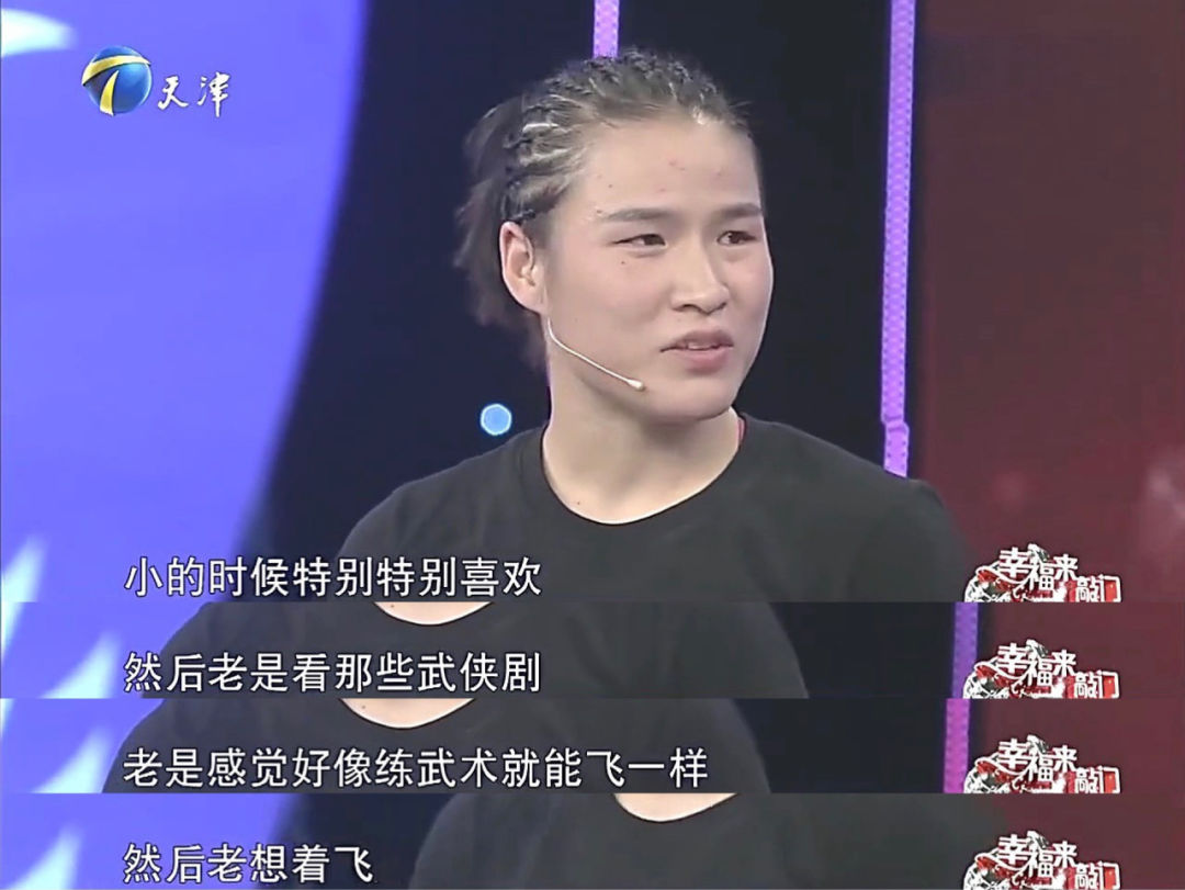她小时候对武术的痴迷来自武侠剧,没事还会披上毛巾cos女侠。