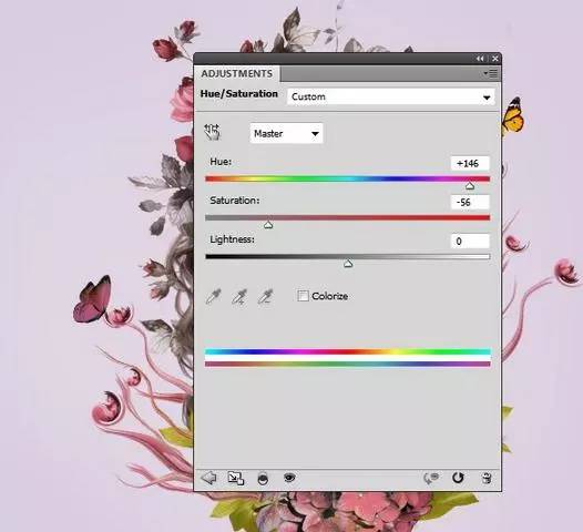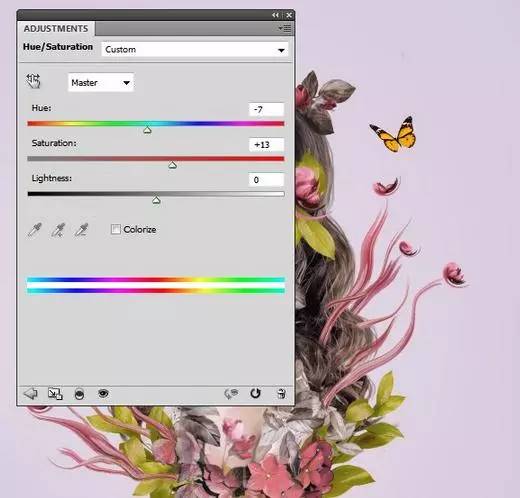 4、更改使用蝴蝶的颜色色相/饱和度调整层。