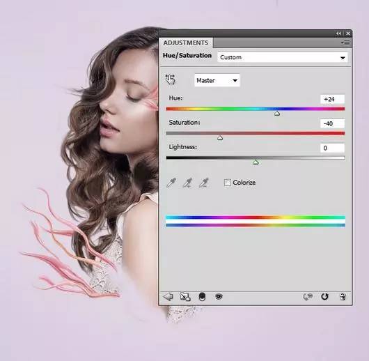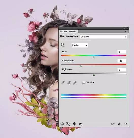11、做一团从花2图像所做的所有元素。使用 色相/饱和度调整层,降低饱和度值- 40。