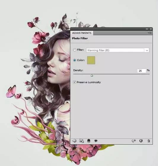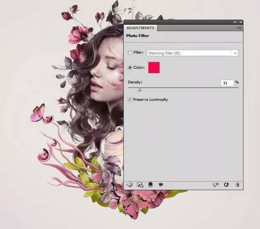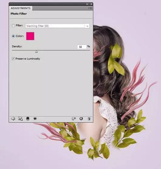 5、创建另一个照片滤镜调整图层,然后选择颜色#f7014c。在此图层蒙版,用柔软的黑色画笔,以减少对边缘和模特的脸的效果。其目的是避免使色彩效果看平。