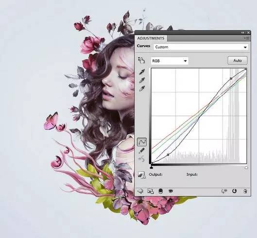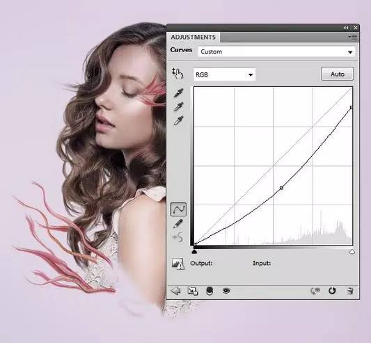 3、添加一个曲线调整层改变整个图像的对比度和色彩。
