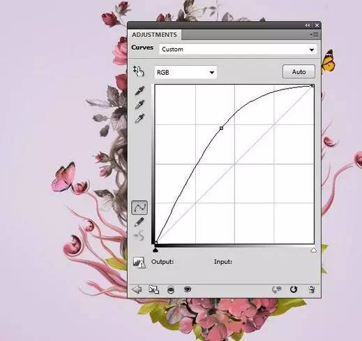 5、使用曲线调整图层,使蝴蝶亮。