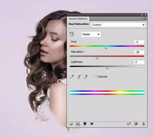4、使用色相/饱和度设置,剪贴蒙版到人物,设置如下图。