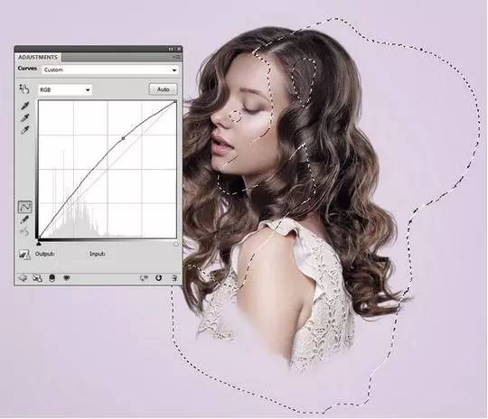 5、做一个曲线调整图层,照亮模型。在此图层蒙版,用柔软的黑色画笔擦除这是已经亮领域。