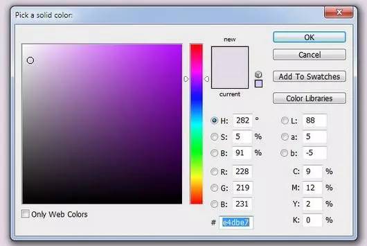 2、去图层>新建填充图层>纯色(#e4dbe7)。