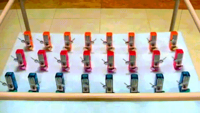 通过科学的实验也证明了这种现象的存在,将很多的节拍器放在一块悬挂的木板上,将它们随意的左右拨动,节拍器会从最开始的混乱摆动,到最后就会完全同步摆动,这个实验就是摆动的同步现象。