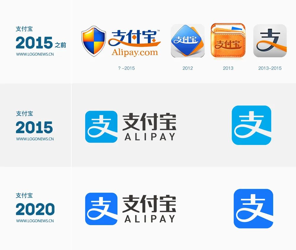 2015年7月,支付宝将这两个品牌将合二为一,升级成为新的「支付宝」,随后,蓝色的「支」字符号正式成为支付宝全新的品牌LOGO。
