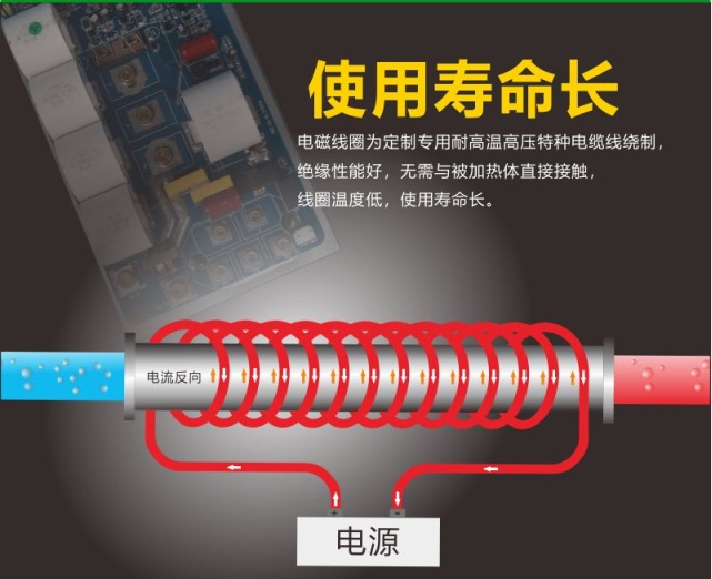 电磁感应加热是通过电流产生磁场,使铁金属管道加热自身,再加上保温材料防止管道散热,热利用率高达95%,理论上节能效果可达50%以上,但考虑到不同质量电磁感应加热控制器的能量转换效率不同,以及生产设备和环境不同,所有电磁加热的节能效果一般可达到至少40%,最大可达到80%以上。