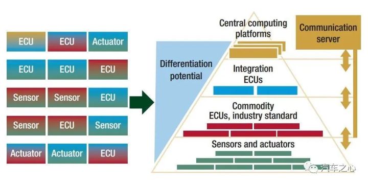 现在车载 ECU 的数量相比汽车早期出现数倍增加,以及日益增加的海量数据等待处理,直接让传统 E/E 架构不堪重负。