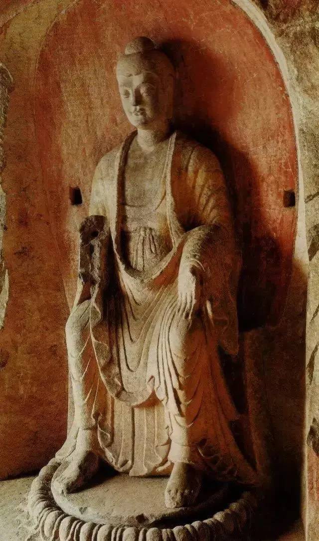 从艺术的角度看,这种新风格不如前期那样引人入胜,艺术水平不高,感染力不强。比如,南响堂山第7窟弟子像。完全可以看作是当地民间工匠的创作,他们将中原传统陵墓石人、兽的技法带进了佛教造像工艺之中。这个变化的影响是深远,与北周一样淡化着佛教艺术的宗教气氛,在融入隋代雕塑技法之后,为盛唐的雕塑高峰奠定了基础。