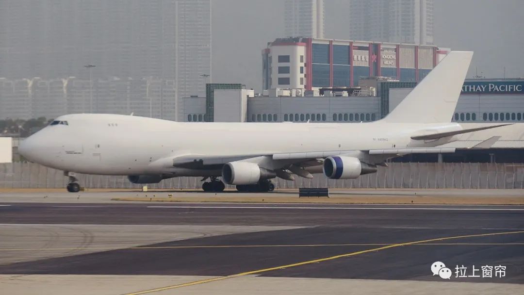 货运公司不像客运公司那样讲求形象,只要能赚钱就好。在香港,你也能看到“全白”的波音747货机。图中这架属于美国“地图航空(Atlas Air)”,它是美国和全球重要的货运公司之一,拥有多达80架专门的大型远程货机。它的标准涂装是尾部有个托起的地球,但这一架还未来得及喷涂。