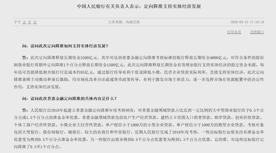 央行有关负责人表示:此次定向降准兼顾主动推动和事后激励,用市场化改革办法疏通货币政策传导,有利于激发市场主体活力,进一步发挥市场在资源配置中的决定性作用,支持实体经济发展。