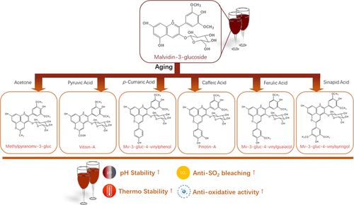 Comparative Study on the Stability and Antioxidant Activity of Six Pyranoanthocyanins Based on Malvidin-3-glucoside. By Jianxia Sun, Xinghua Li, ... , Weibin Bai*. https://doi.org/10.1021/acs.jafc.9b06734