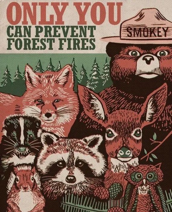 “Only you can prevent wildfires.”是Smokey Bear持续念叨了整个熊生的口号,野外火灾是一种一年四季都存在的现象,美国的每个地区都可能发生计划外的野火,几乎每10次野火中就有9次是人为引起的。