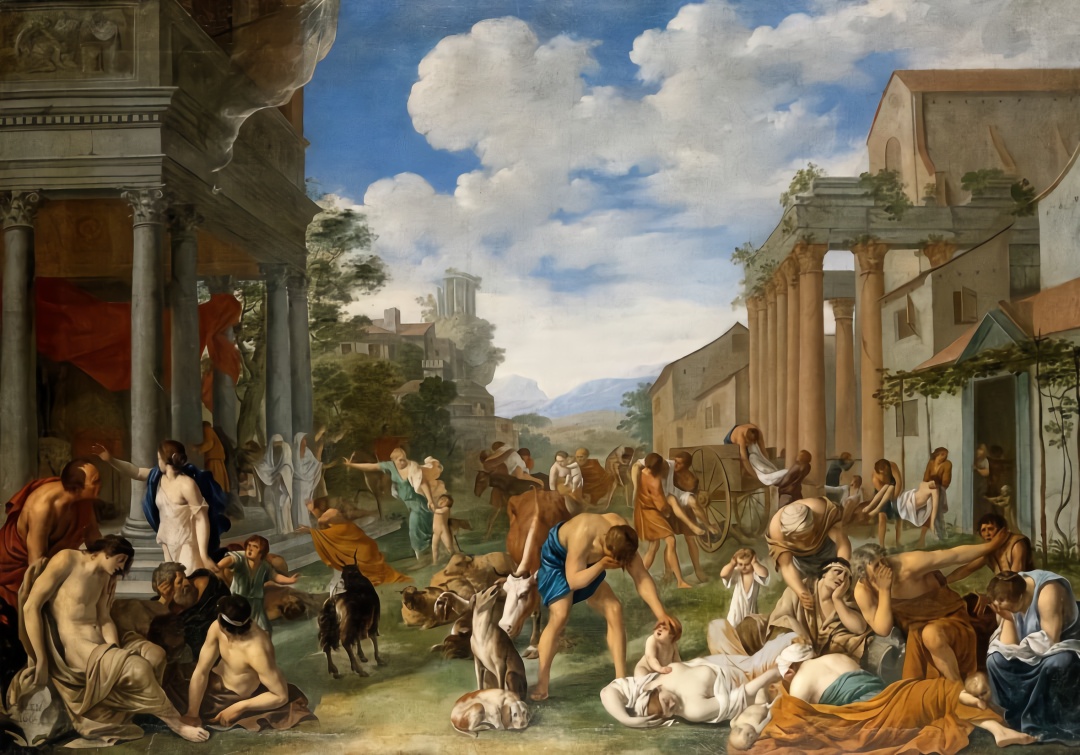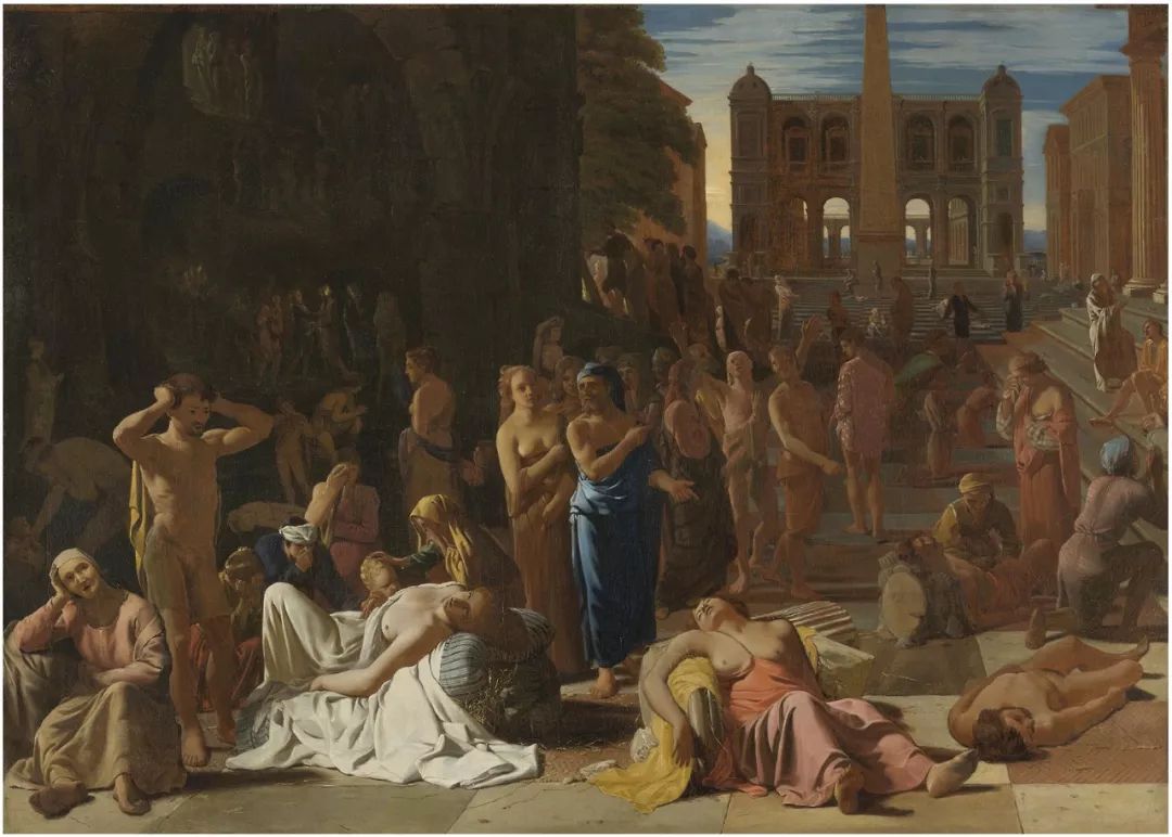 尼古拉斯·普桑「阿什杜德的瘟疫」,真实描述了公元2世纪中叶,古罗马安东尼大帝执政时期,突然爆发的「安东尼瘟疫」。