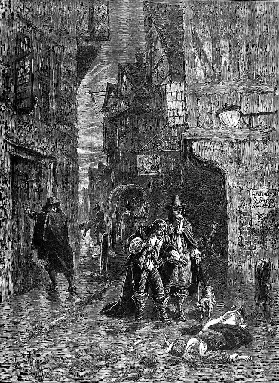 瘟疫被确定为「淋巴腺鼠疫」引起的大面积黑死病,瘟疫袭击的第一个地区是伦敦的圣吉尔斯教区。至1665年开春,由于人口激增和卫生条件的恶化,瘟疫开始遍布伦敦城。