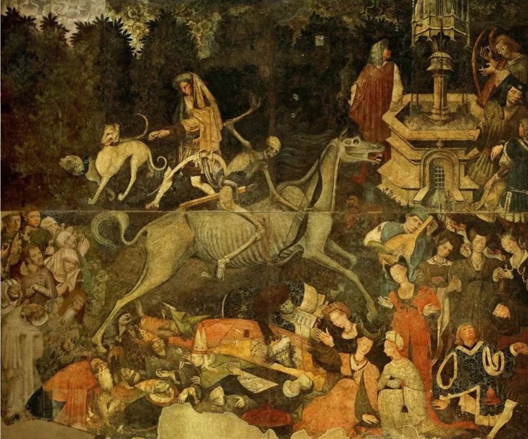 创作于1446年的壁画《死神的胜利》,被誉为意大利哥特晚期最具代表性的作品之一,描绘的正是瘟疫爆发后死神肆虐的景象。