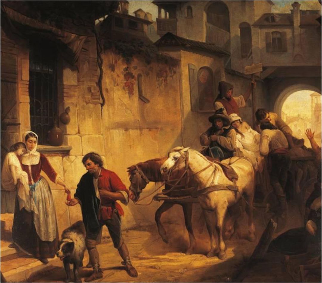 居勒·埃里·德洛内《被瘟疫侵袭的罗马城》描绘的情景,正是「查士丁尼瘟疫」。
