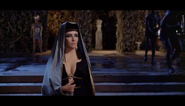 《埃及艳后》那部电影当时是创下了世界电影史上的第一高成本,花的钱可以说是空前绝后。规模之大确实让人震撼,那时候还没有电脑动画。大家看后来的什么《泰坦尼克号》,整条船恨不得都是用电脑做出来的,但是拍《埃及艳后》的时候那真得做一条大长龙船,埃及艳后坐在那大龙船上,整条船用黄金包着,用各种各样的绫罗绸缎围着,那都是真的。电影中要做出整个的罗马城堡,巨大的城楼,她坐在一个黄金制成的高篷大车上,那些场景的制作可以说是花钱无数。饰演埃及艳后的是著名演员伊丽莎白·泰勒,那是她当年最美的时候。