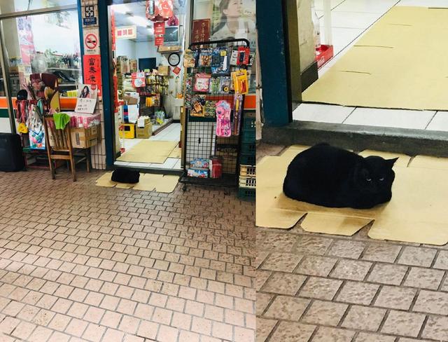 ▲有人在店门口看到谁掉了个包,结果走近一看是黑猫