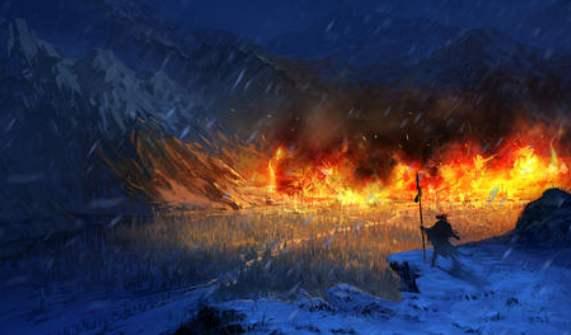 其二,从火烧草料场到手刃仇人,作者所着力描写的“火”有力地烘托了林冲心的起伏变化。林冲初到草料场时,虽然满腹悲愤,却也想安心捱熬下去。当他见到草屋破旧时,就说道: