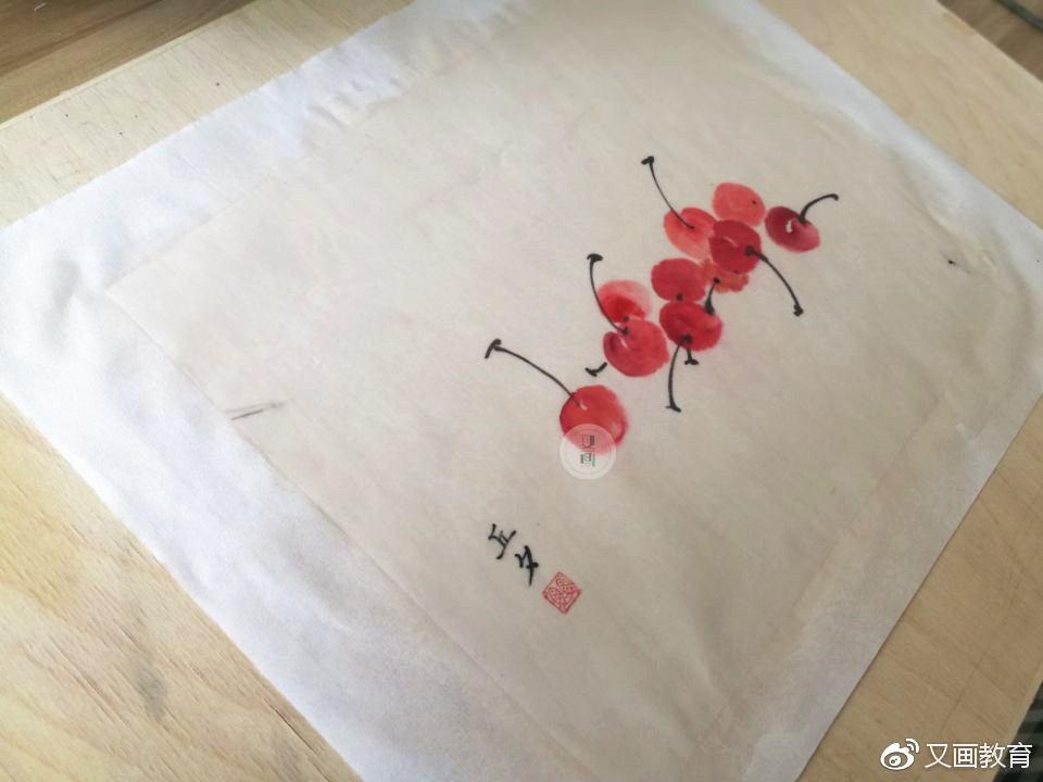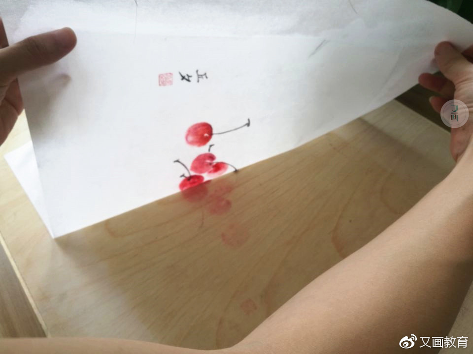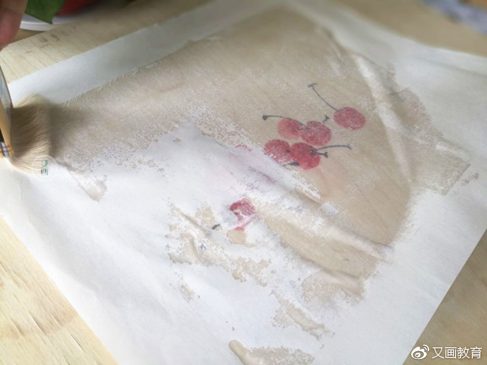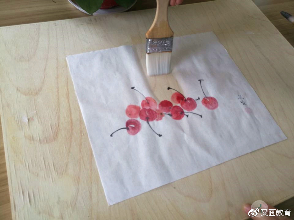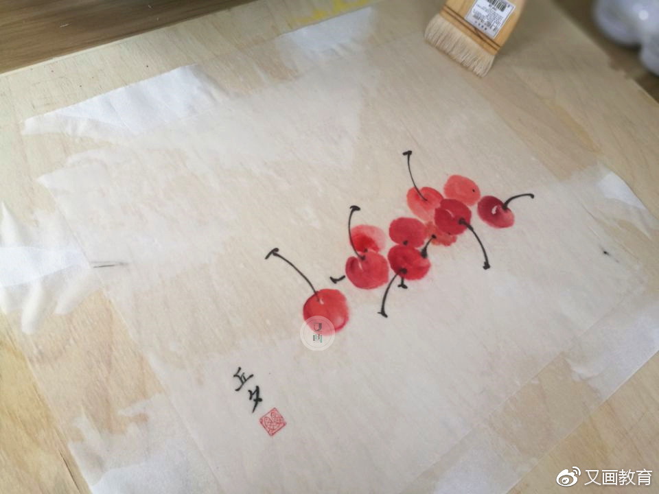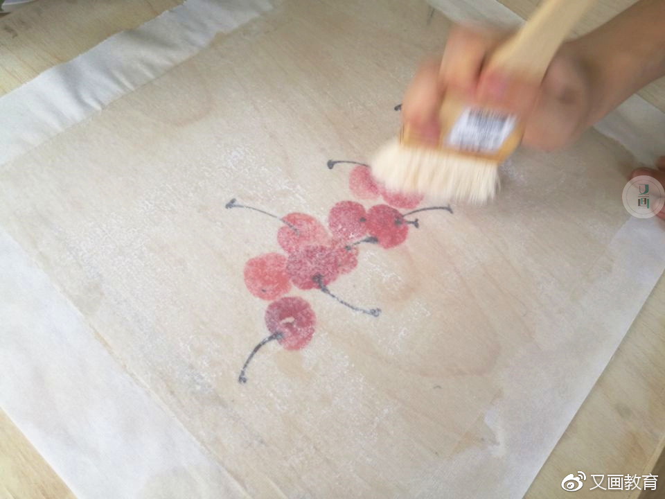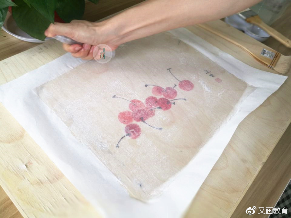 2. 待画心潮润且平整时,就可以伸伸腰啦!