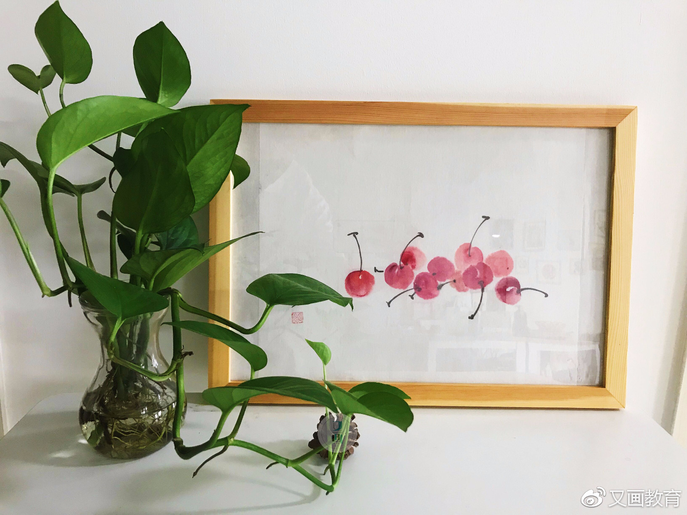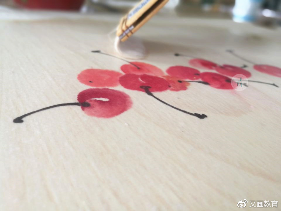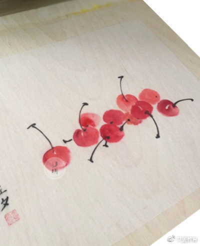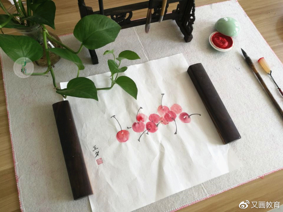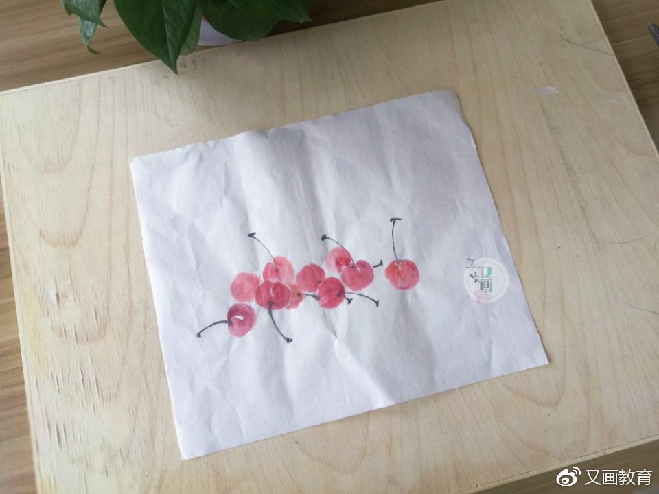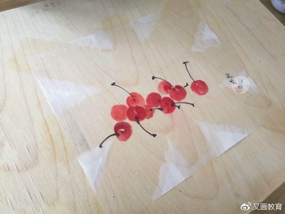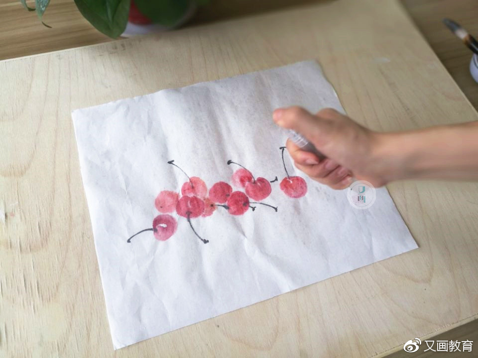 2. 待画心潮润且平整时,就可以伸伸腰啦!
